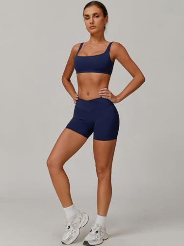 ABOCIW Workout Sets for Women Square Neck Sports Bra Crossover Waist Scrunch Butt Lifting Shorts 2 Piece Gym Set 5
