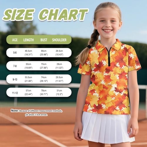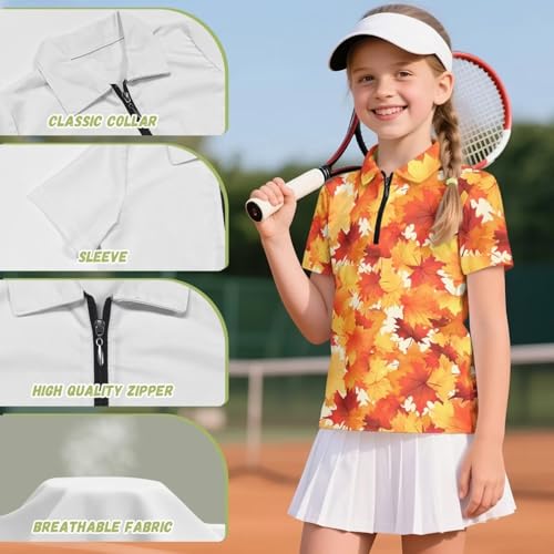 HOT ! Girls Short Sleeve Shirts Printed Zipper UP Golf Tennis T-Shirts with Collared Quick Dry Athletic Shirts for 5-12Y