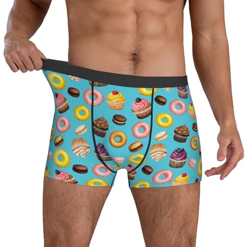 HOT ! Mens Underwear - Boxers for Men, Cupcake Donut Macaroon Prints Boxer Briefs for Men Pack, Mens Boxer Briefs