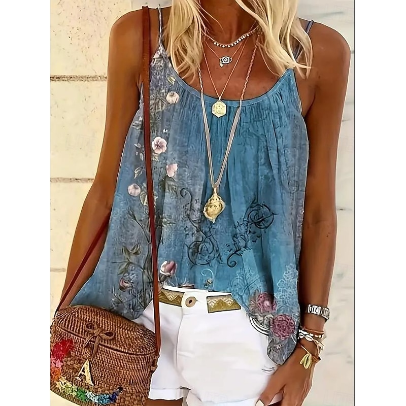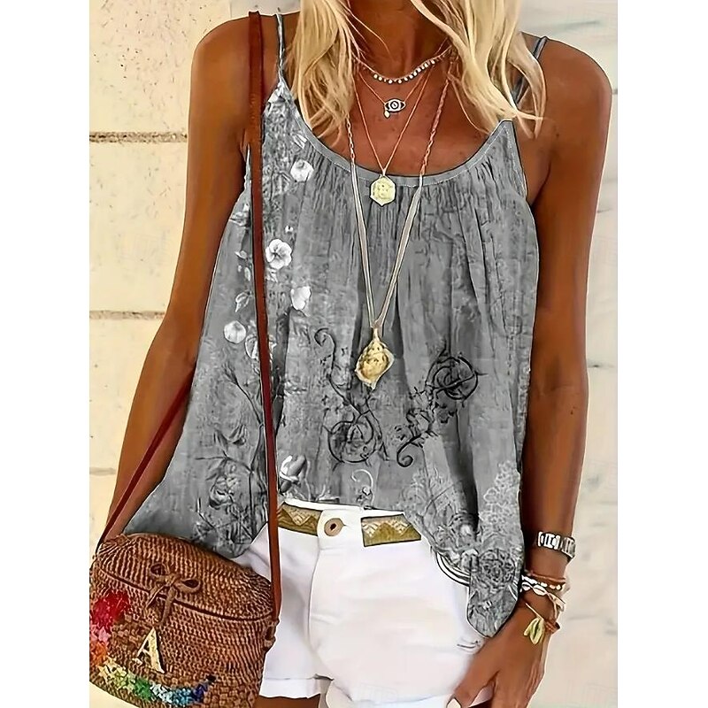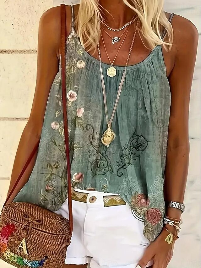 HOT ! Women's Blouse Floral Graphic Bohemia Daily Hawaiian Sleeveless Strap Regular Tops Daily Print Backless Pink Blue Green Gray Summer Spring