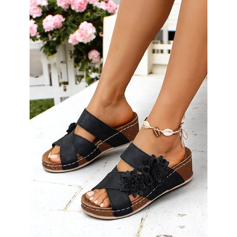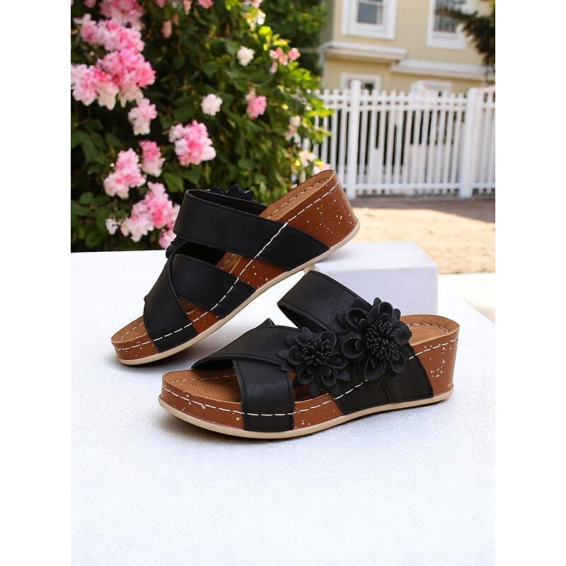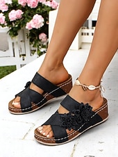 Highlights - High-quality faux leather upper materials - Stylish round toe design - Trendy open toe style - Durable rubber outsole materials - Stay ahead of the fashion curve with our 2024 trend: wedge sandals.