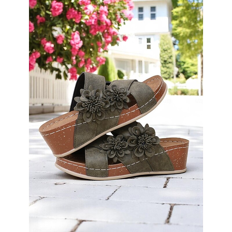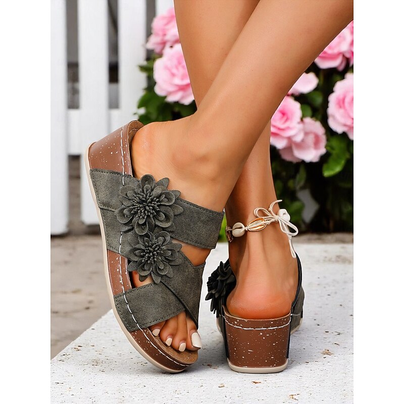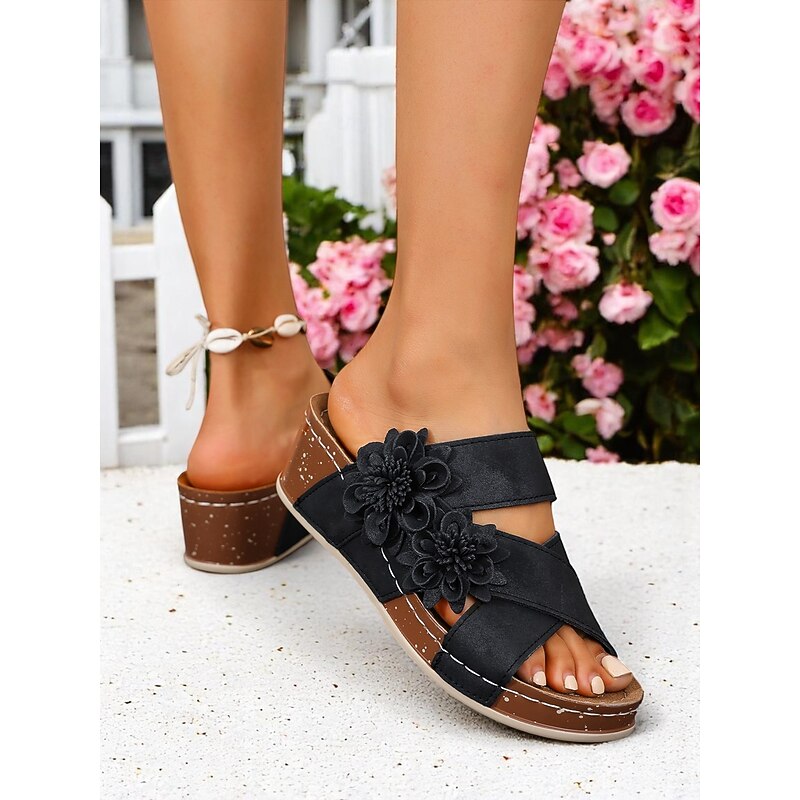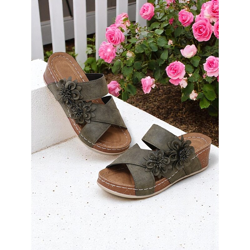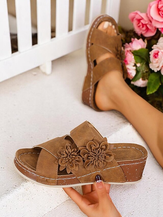 Women's Brown Floral Slide Sandals with Cushion Sole for Home Wear Garden Relaxation and Casual Weekend Outings 20