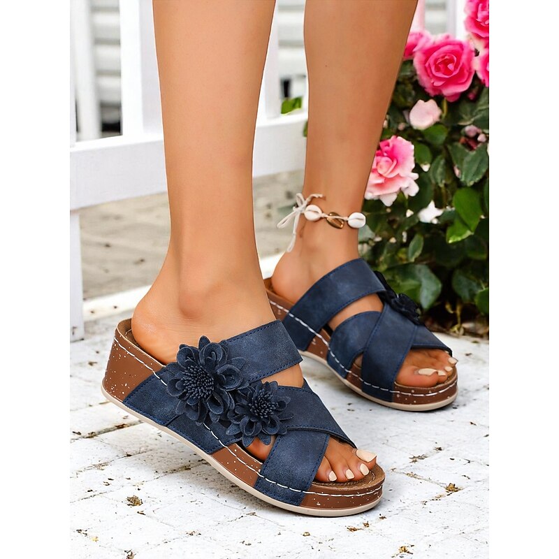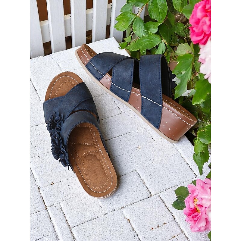 Women's Brown Floral Slide Sandals with Cushion Sole for Home Wear Garden Relaxation and Casual Weekend Outings 23