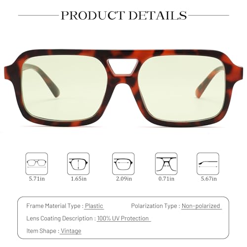 • [Narrow Rectangle Aviator Style] Classic 70's vintage square frames with stylish and bold color scheme and square tinted lens design. Simply match with your outfit of the day for an instantly chic look.
