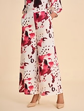 More information about Women's Burgundy Abstract Print Elastic Gathered Wide-Leg Pants