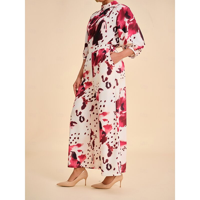 HOT ! Women's Burgundy Abstract Print Elastic Gathered Wide-Leg Pants