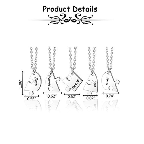 • BEST FRIEND NECKLACES FOR 5 - Silver friendship necklaces for Women BBF Gifts,Engraved Best friends forever and ever broken heart Jigsaw puzzle piece pendant necklace Matching Friend bbf birthday Gifts for women.Memorial gift for graduation,birthday,team-building,family reunion etc.