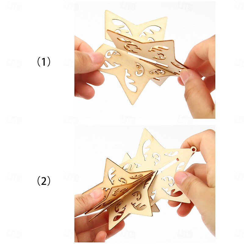 10PCS Christmas Wooden Ornaments, 3D DIY Assembly Hanging Decorations with Star and Heart Shapes, Creative Simple Wood Xmas Tree Hanging Decor for Holiday Scene Arrangement 5