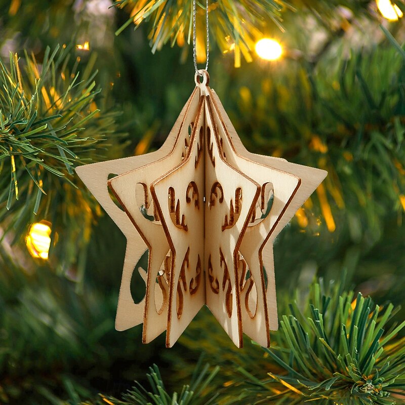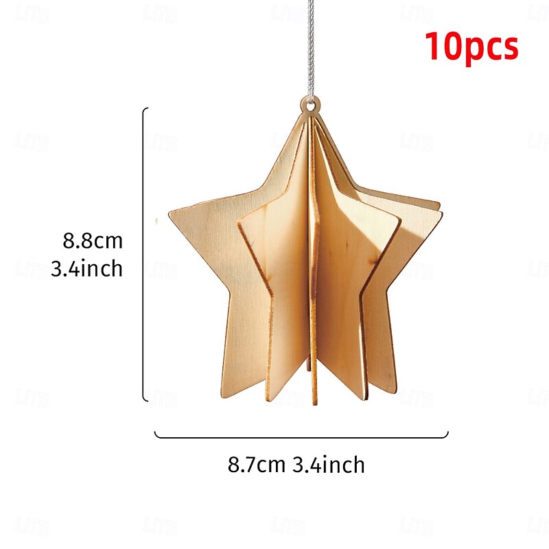 HOT ! 10PCS Christmas Wooden Ornaments, 3D DIY Assembly Hanging Decorations with Star and Heart Shapes, Creative Simple Wood Xmas Tree Hanging Decor for Holiday Scene Arrangement