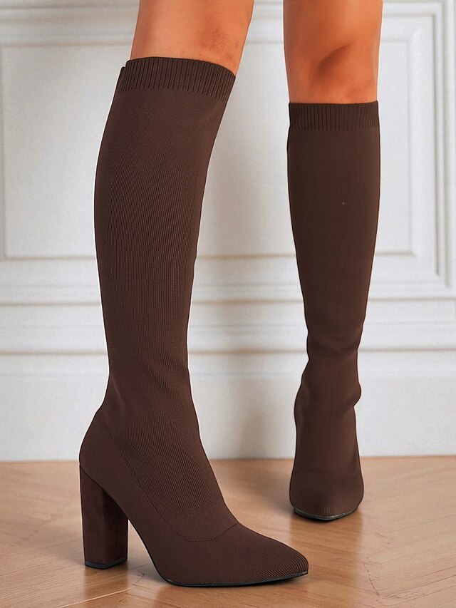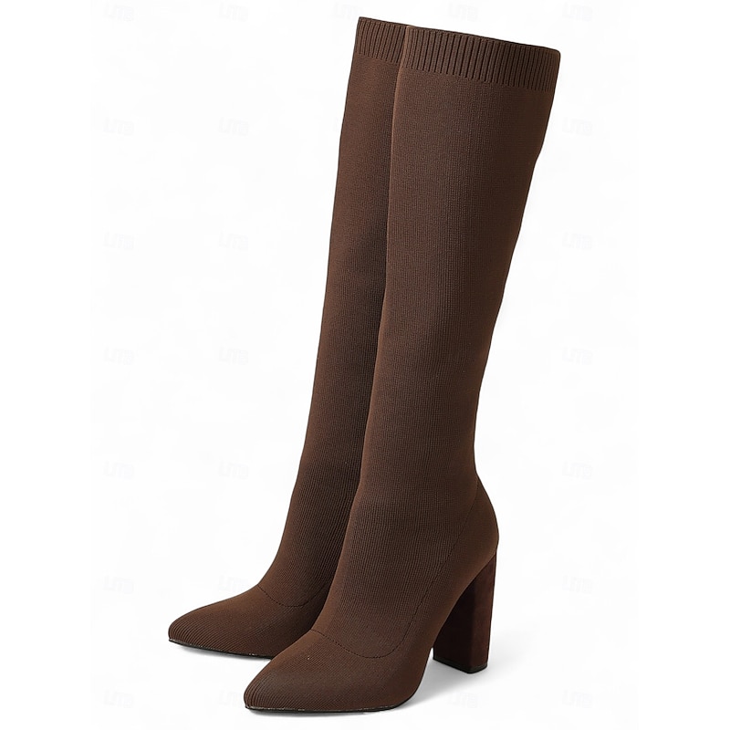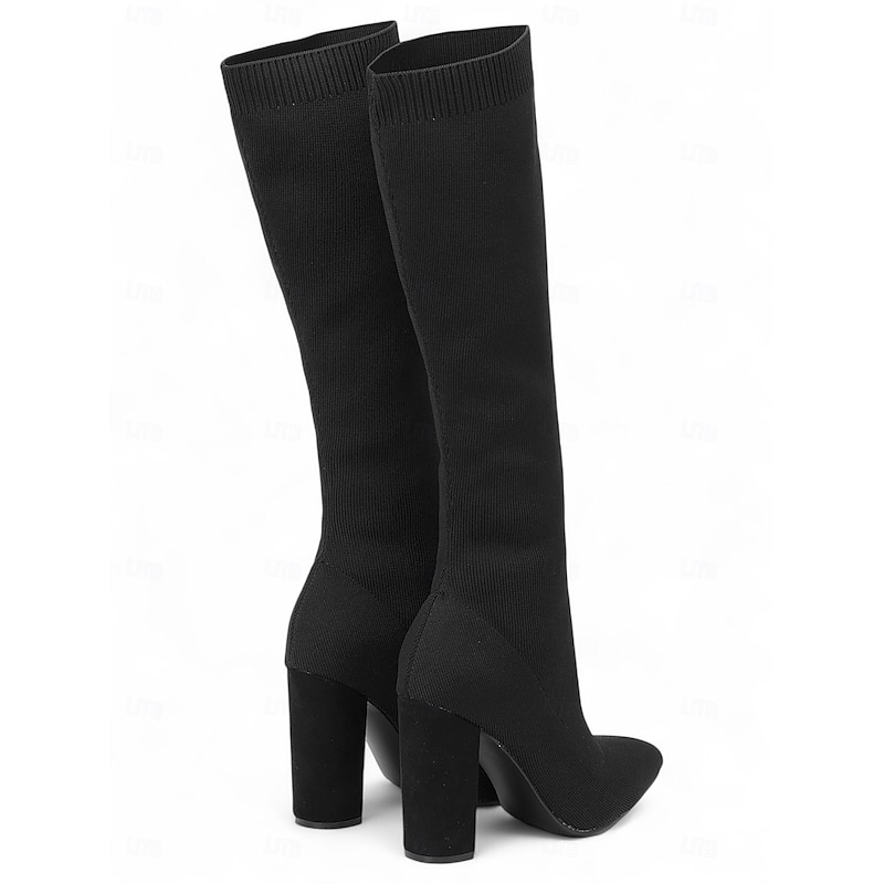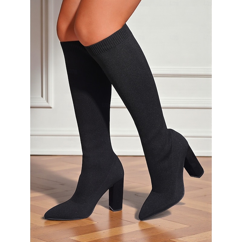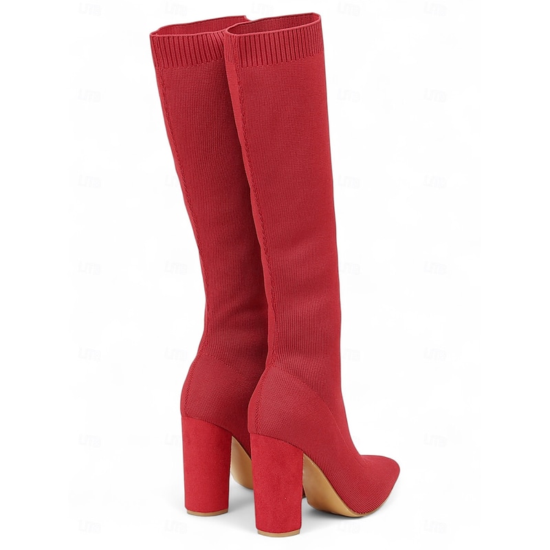 More information about Women's Red Knee-High Sock Boots - Stretch Knit Pointed Toe Chunky Heel Long Boots for Fashionable Fall Winter Outfits, Parties and Streetwear Looks