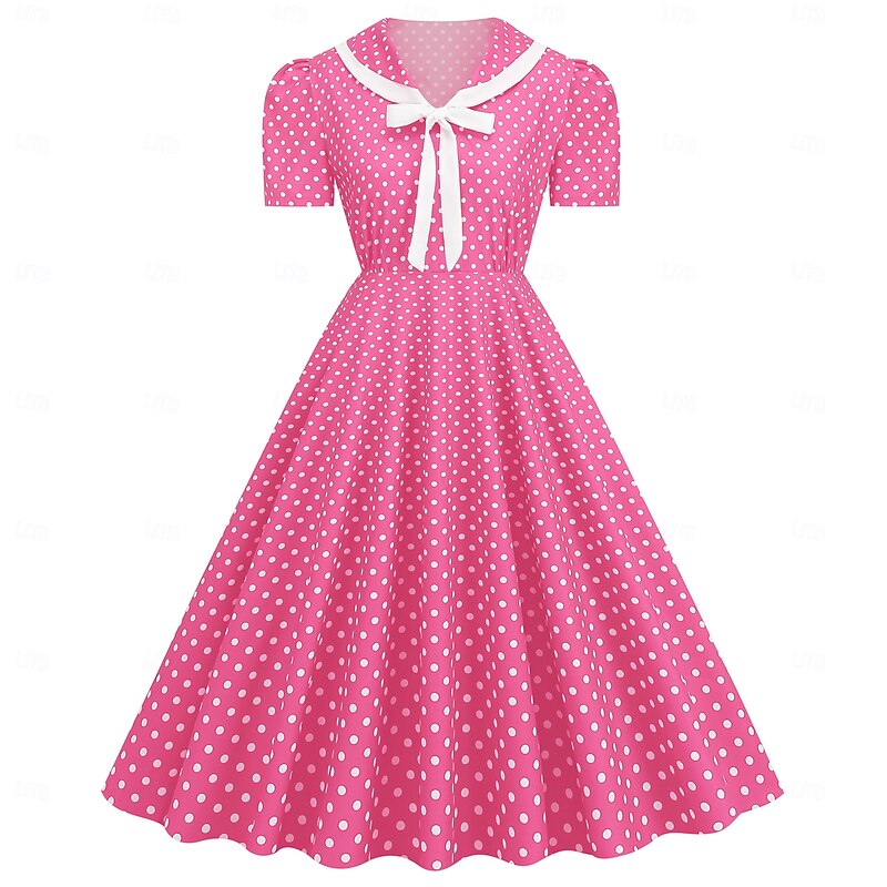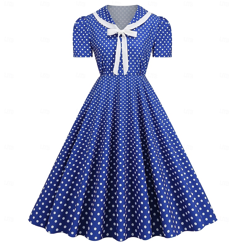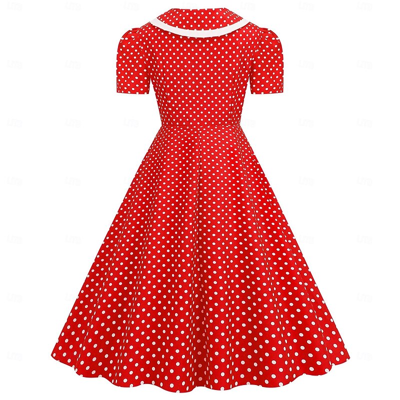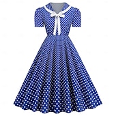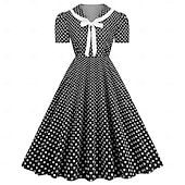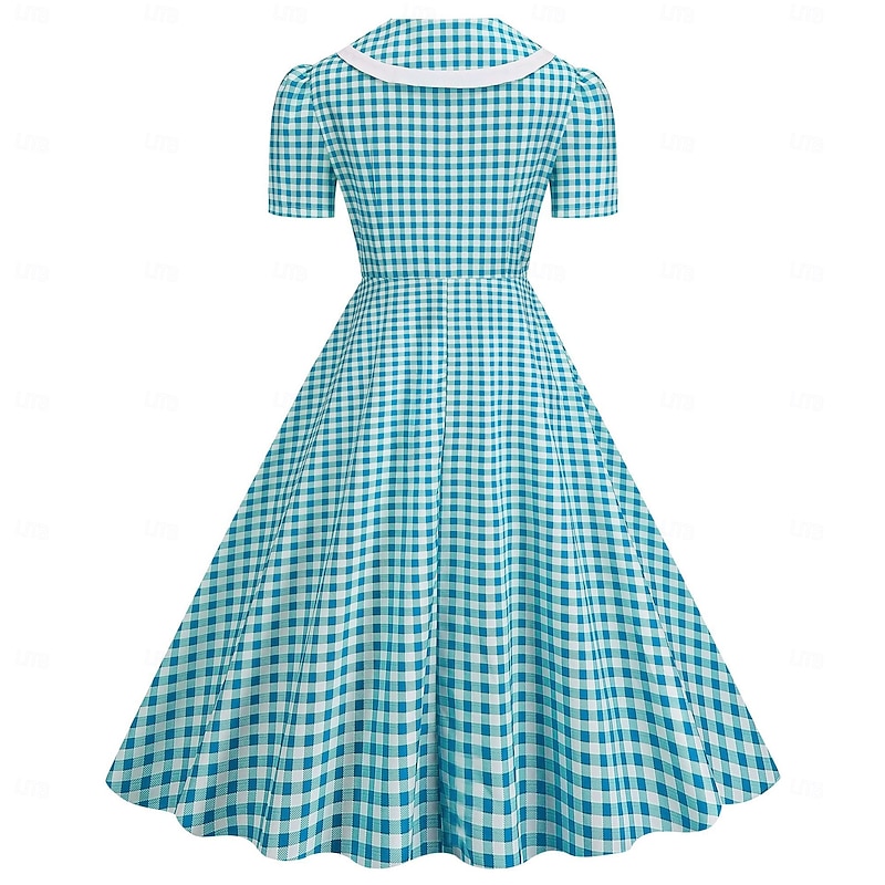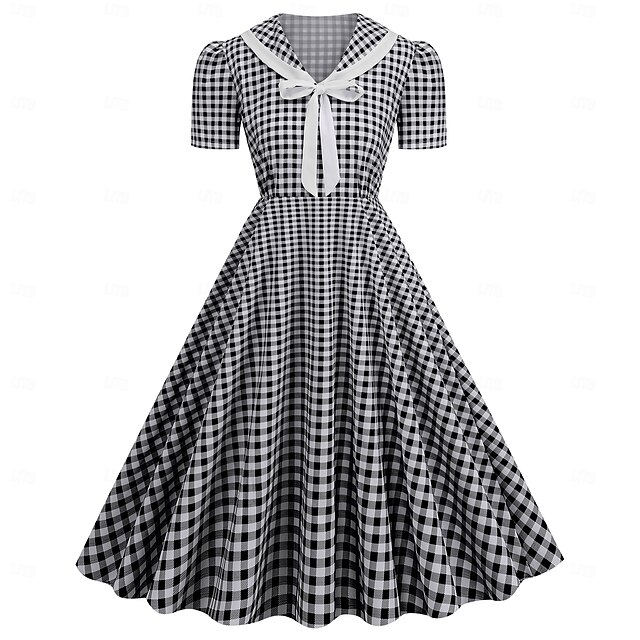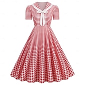 More information about Retro Vintage 1950s Rockabilly Swing Dress Flare Dress Fit and Flare Plaid Polka Dot V Neck Fancy Dress Women's Halloween Carnival Vacation Casual Daily Retro Theme Party Adults Dress Spring & Summer
