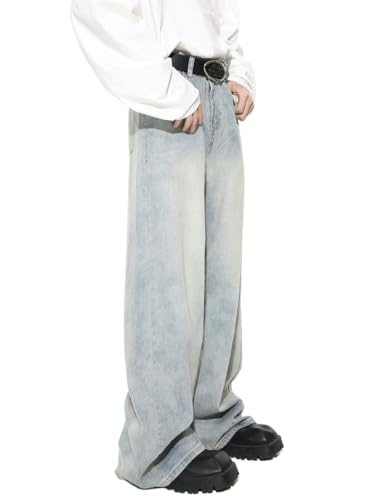 • Men's casual loose fit wide leg hiphop skater y2k baggy jeans denim pants for men/juniors/boys.