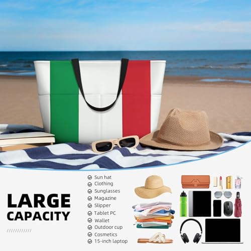 italy flag Large capacity beach bag with zipper, perfect for grocery bag pool gym travel shopping foldable beach travel bag, 1