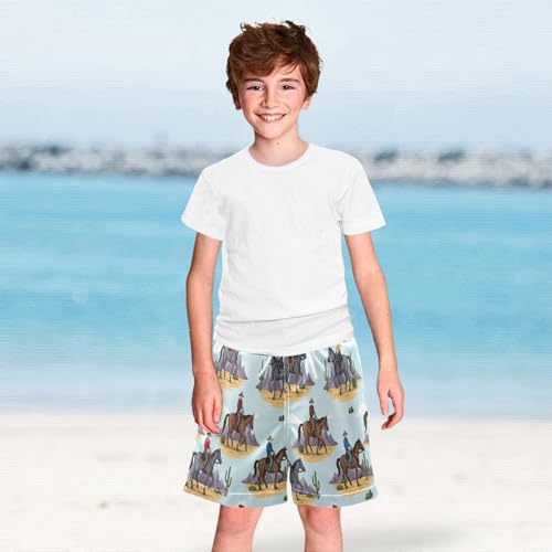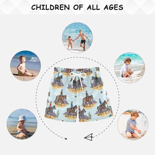 Swim Shorts for Boys, Anti-Chafe Swim Trunks Boys 2 T, Cowboys Horses Desert 4