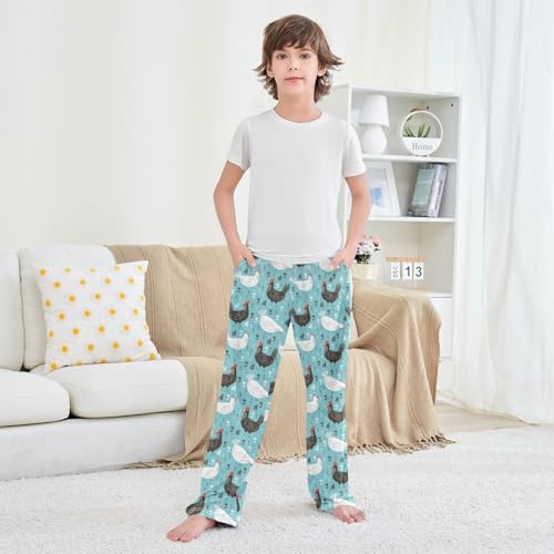 Cock Hen Florals Boys Long Pants Soft Trousers Elastic Waist Kids Lounge Bottoms with Pockets S-XL 4