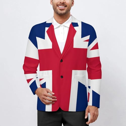 Flag of The United Kingdom Mens Suit Jacket Lapel Blazers V Neck Button Business Coat Tuxedo for Wedding Party 1
