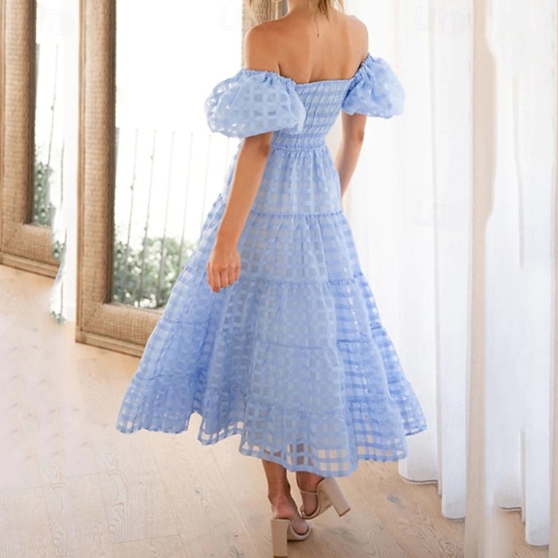 More information about Women's Long Dress Maxi Dress Casual Dress Fashion Outdoor Party Holiday Regular Fit Plain Short Sleeve Off Shoulder White Pink Blue Summer