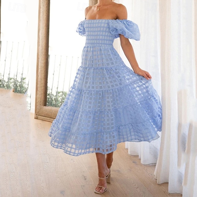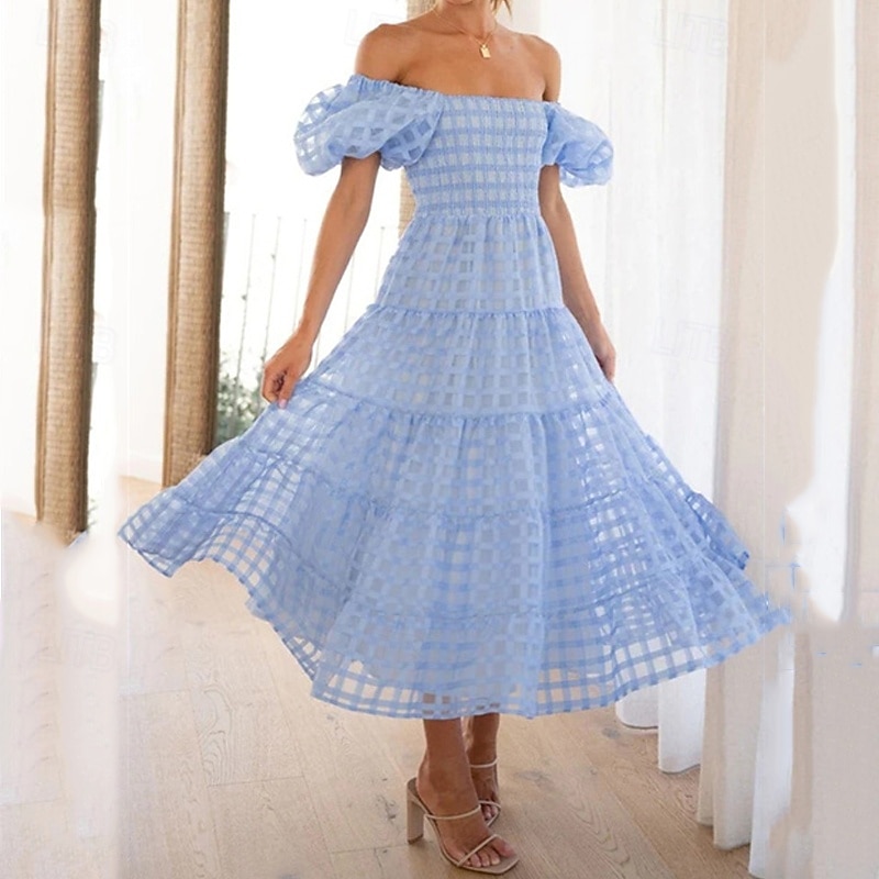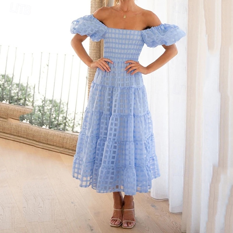 Women's Long Dress Maxi Dress Casual Dress Fashion Outdoor Party Holiday Regular Fit Plain Short Sleeve Off Shoulder White Pink Blue Summer 12