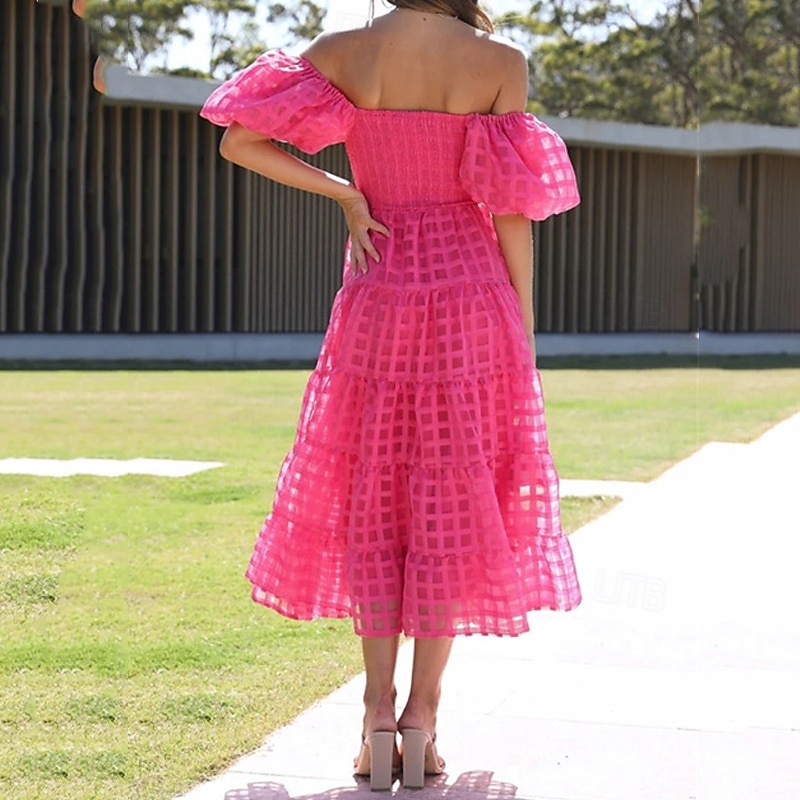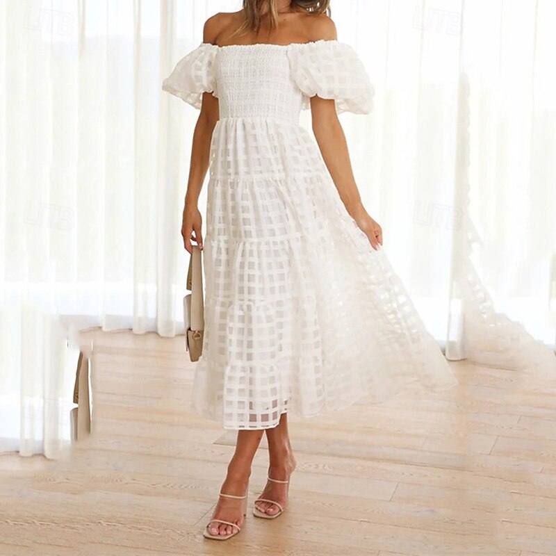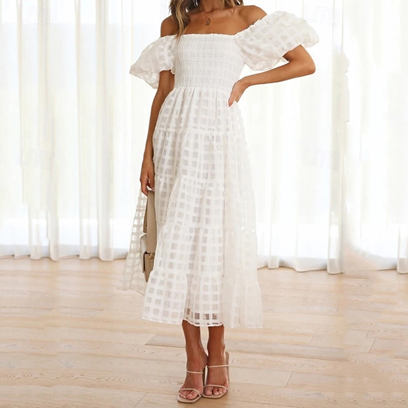 Women's Long Dress Maxi Dress Casual Dress Fashion Outdoor Party Holiday Regular Fit Plain Short Sleeve Off Shoulder White Pink Blue Summer 14