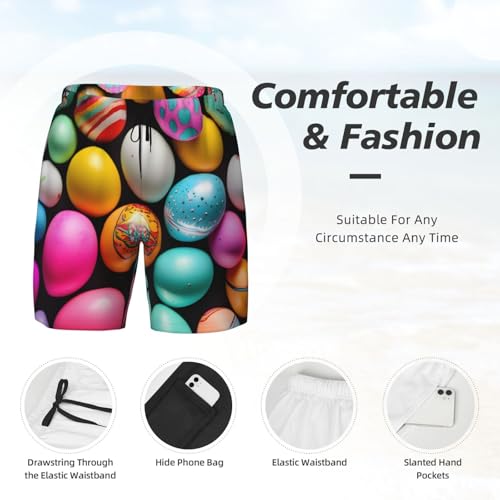 HOT ! Easter Eggs Men's Soft Double Swim Shorts, Lounge Swiming Shorts Pants Breathable Summer