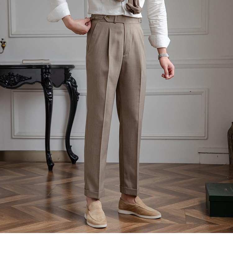 Men's Classic Pleated Dress Pants High-Waist Linen Blend Formal Business Slacks Light Breathable Casual Summer 4
