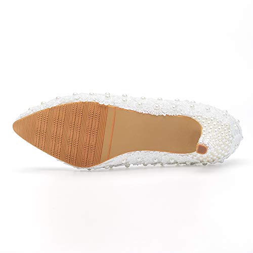 Dressfirst Women's Bridal Stiletto Heel Closed Toe Pumps with Imitation Pearl Applique,1.97"… 2