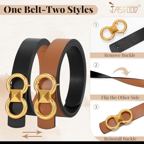 JASGOOD Women's Reversible Leather Belt Fashion Ladies Waist Belt for Jeans Pants with Gold Buckle 2
