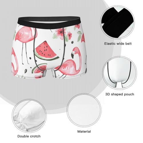 Men's Underwear Pink Flamingo Watermelons Flowers Boxer Briefs Breathable Comfortable 2