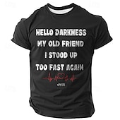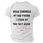 Highlights [Fabric:] Crafted from a blend of high-quality polyester, this men's t-shirt is designed to provide maximum comfort and breathability. The lightweight fabric ensures a soft touch and a durable wear, making it perfect for warm spring and summer days. [Fit:] Featuring a regular fit, this t-shirt offers a relaxed and comfortable feel, allowing for easy movement. Its classic crew neck and short sleeves make it a versatile piece suitable for everyday wear. [Design Highlights:] The shirt showcases a unique and humorous 3D print design with bold white text and a striking red heartbeat graphic. The text "HELLO DARKNESS MY OLD FRIEND I STOOD UP TOO FAST AGAIN" adds a playful touch to the retro vintage style. The micro-elastic fabric allows for a comfortable and adaptable fit. [Occasions:] Ideal for various casual scenarios, this t-shirt is perfect for outdoor sports, holiday outings, going out, or simply enjoying a laid-back day. Its versatile style makes it suitable for both everyday casual wear and special occasions. [Size Range:] Available in a wide range of sizes from S to XXXL, this t-shirt accommodates different body types, ensuring a suitable fit for everyone. The variety of colors including Green, White, Black, and Dark Blue allows you to choose the perfect look for your personal style.