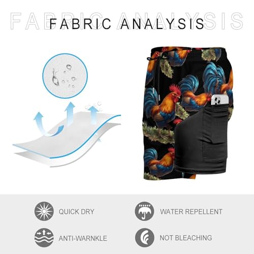 Rooster Colorful Casual Beach Shorts for Men Elastic Waist Drawstring Swim Shorts With Compression Liner 3