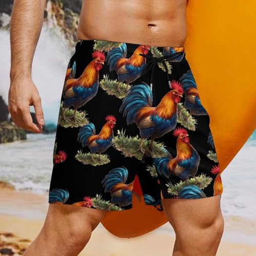 Rooster Colorful Casual Beach Shorts for Men Elastic Waist Drawstring Swim Shorts With Compression Liner 1