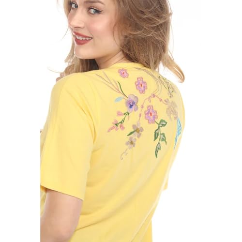 More information about Johnny Was Maureen Trapunto 3/4 Tee Shirt Floral Embroidery Top Citron Yellow New