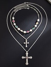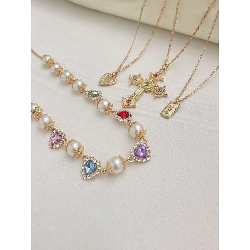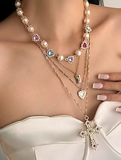 $14.99 - Women's Baroque Pearl and Multicolor Heart Pendant Layered Necklace with Cross Charm - Elegant Statement Jewelry for Party, Wedding, and Evening Events 2025. Shop for cheap Women's Necklace online? Buy at lightinthebox.com on sale today!