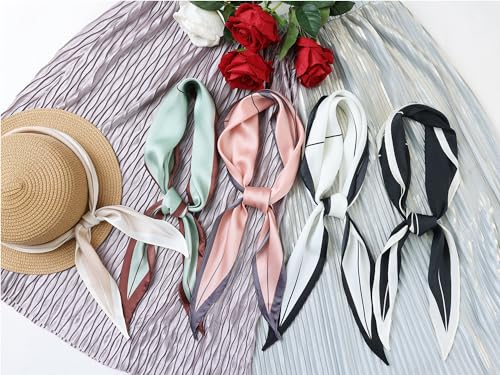 Women's Simple Striped Silky Scarf, Contrast Color Long Hairband Headscarf Neck Scarves Neckerchief 4