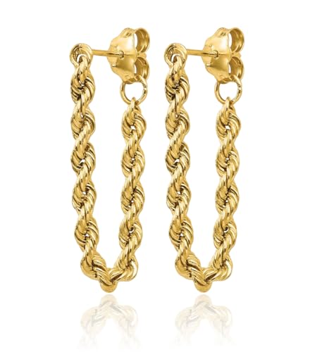 More information about 14K Solid Yellow Gold Rope Drop Dangle Earrings