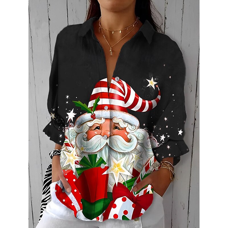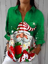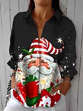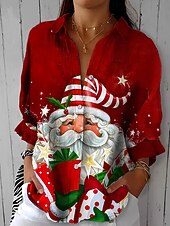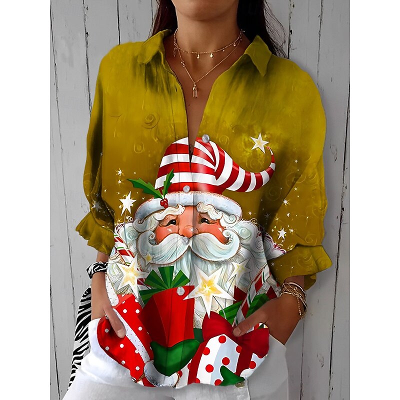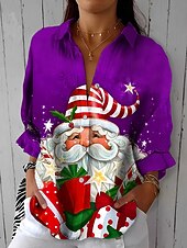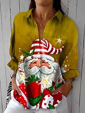 More information about Christmas Women's Shirt Graphic Santa Claus Vintage Tropical Daily Long Sleeve Shirt Collar Regular Tops Daily Holiday Buttons Print Black Yellow Red Blue Purple Summer Spring Fall Winter