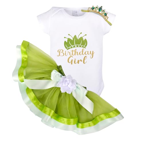 Princess Tiana Baby Girl 1st Birthday Tutu Outfit Set 3PCS With Cotton Romper,Tutu Skirt+Headband-Photo Props 3