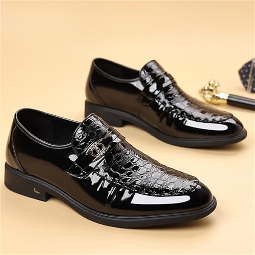 Men's Genuine Leather Slip On Loafers Shiny Dress Shoes for Business Casual Comfortable British Style Oxfords 6