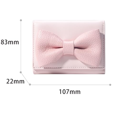 HOT ! Women Girls Wallet Cute Bowknot Wallet Small Tri-Fold PU Leather Wallets Aesthetic Women Purse Short Trifold Wallets Cash Card Holder Bag (2-Pink)