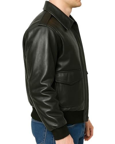 Mens A-2 Leather Bomber Jacket - WWII Aviator Flight Pilot Black Faux Leather Jacket 4