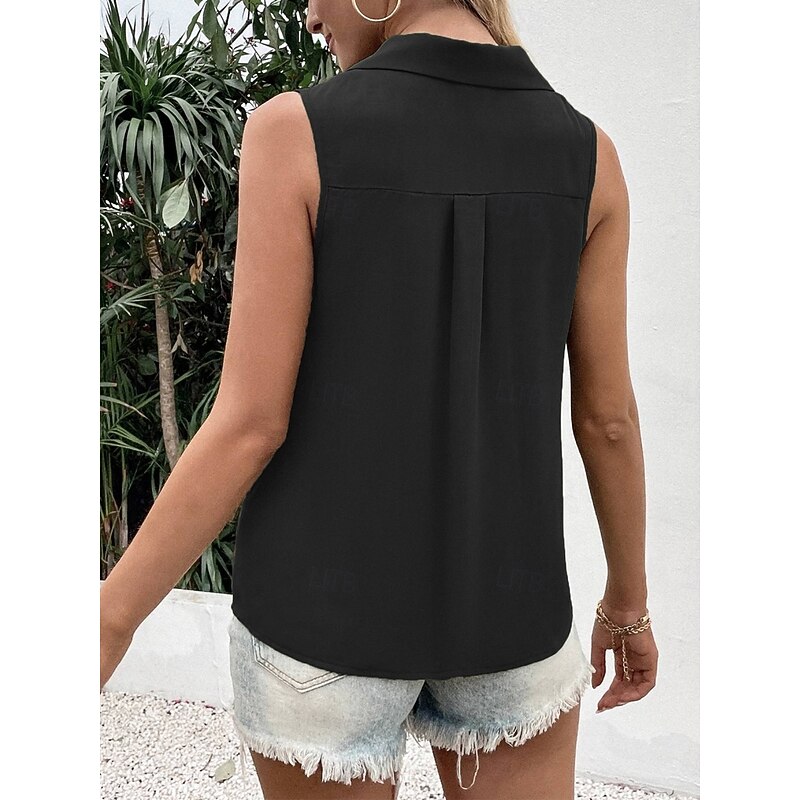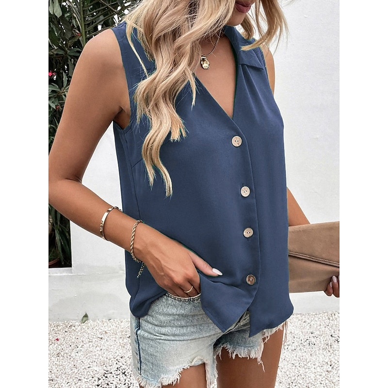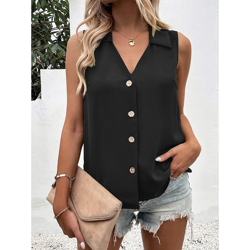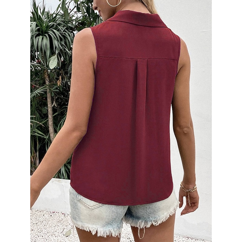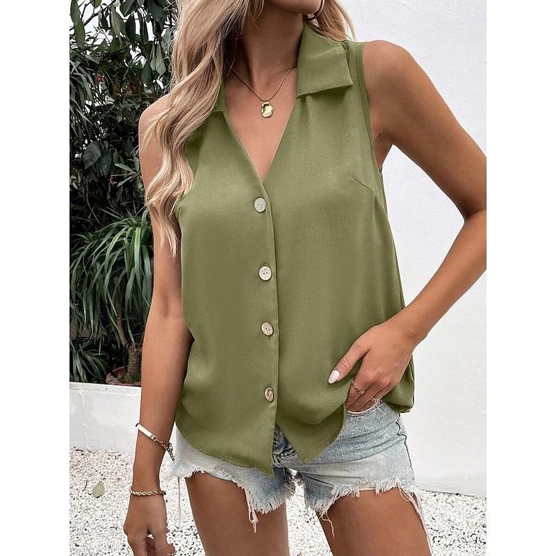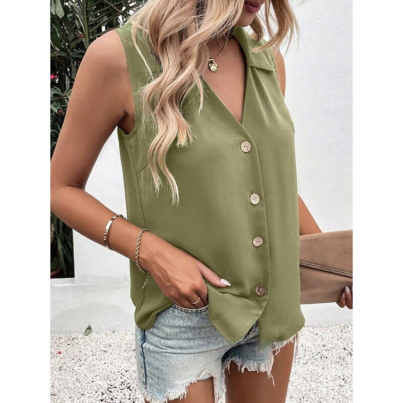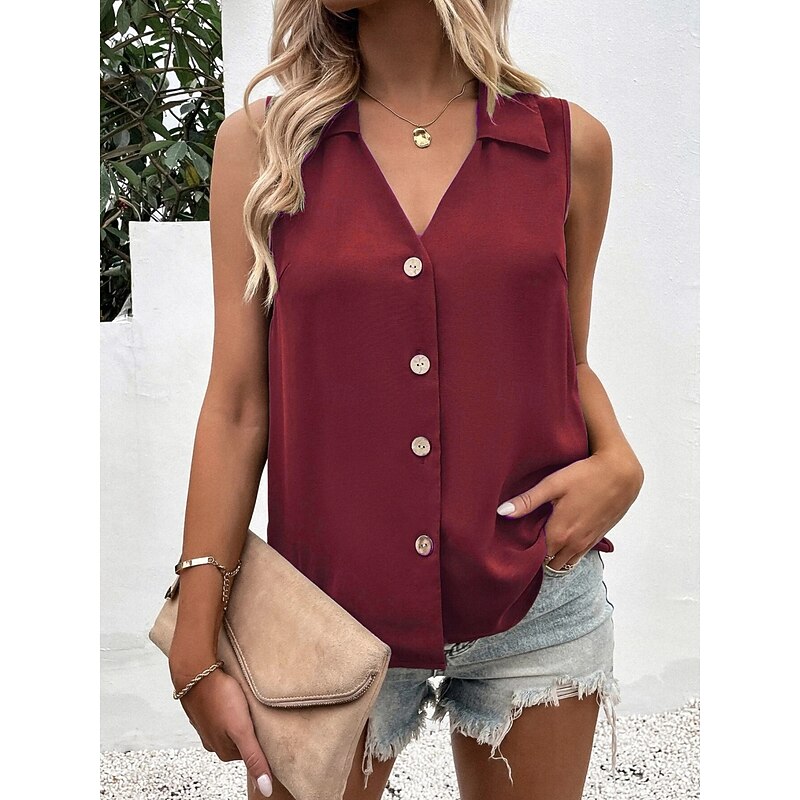 More information about Women's Camisole Tank Top Solid Color Daily Stylish Casual Sleeveless Shirt Collar Regular Tops Daily Buttons Black White Wine Blue Green Summer