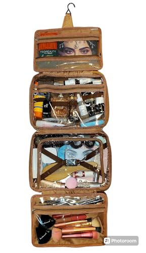 Generic PRODUCTGENICS Travel Toiletry Bag, Large Makeup Bag for Women, Premium Quality and Stylist Cosmetic Bag, Hanging Toiletry Organizer, Water Resistant Makeup Bag, Skincare Pouch. (Brown) 5