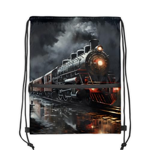 Train Night Drawstring Bag Drawstring Backpack Waterproof Smooth Sport Draw String Back Bag Gym Camping Beach Bag for Men Women 6