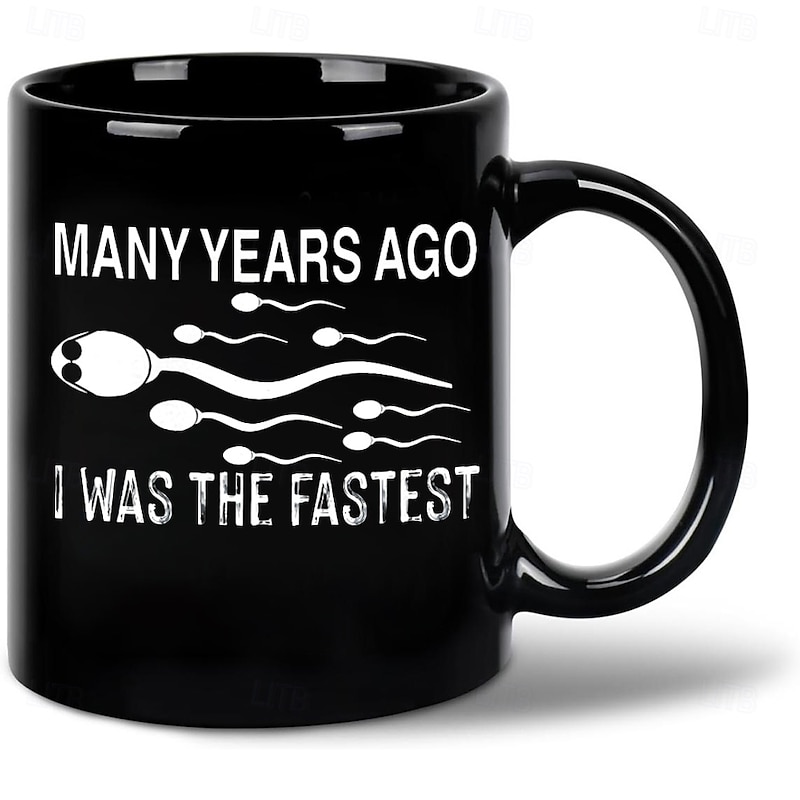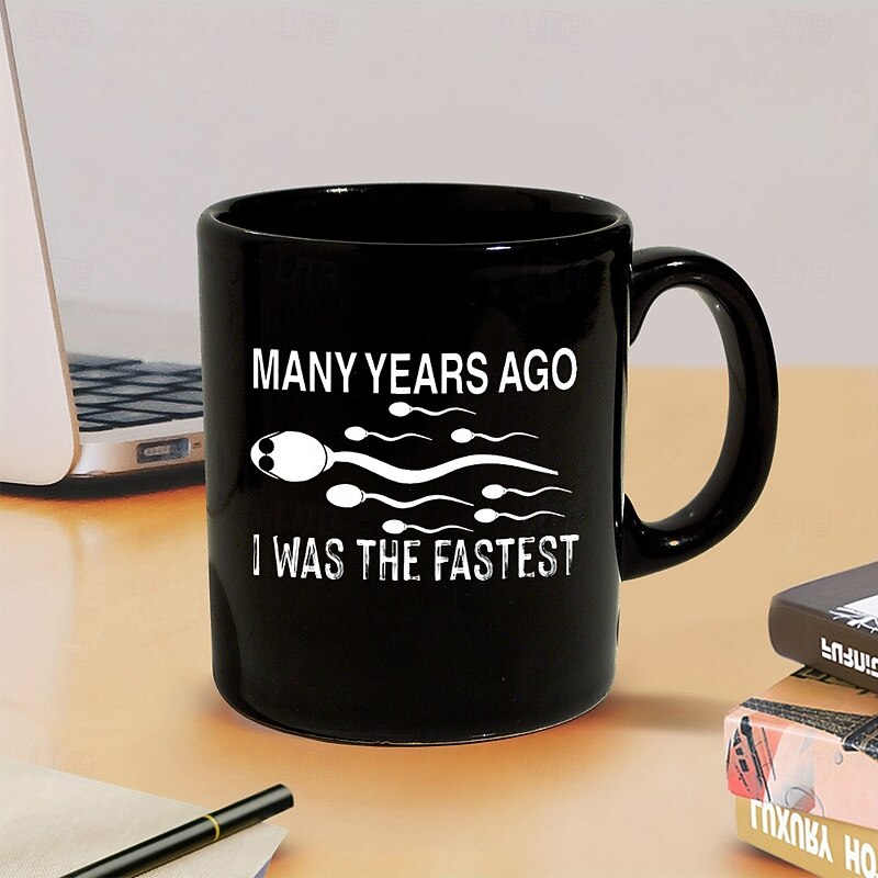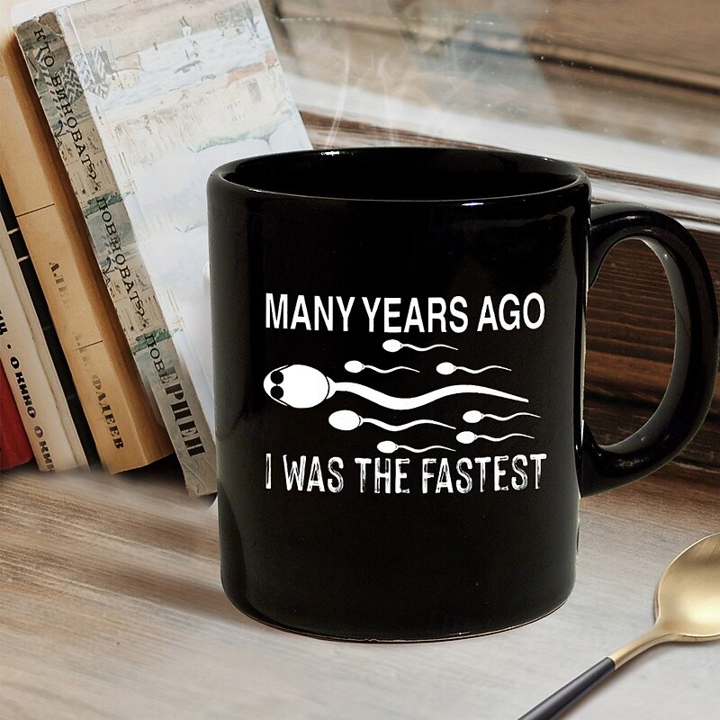 HOT ! Funny Mug Ceramic Funny Coffee Gift Mug Many Years Ago I Was The Fastest Black Retro Vintage Casual Street Style Gift Mug 11.2oz/330ml