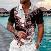 More information about Men's Baroque Zip Polo Shirts Golf Shirt Short Sleeve Polo Shirts Collared Shirts Vintage Casual Vacation Wear Party Outfits 3D Print Quarter Zip Polo Black / Gray Black Pink
