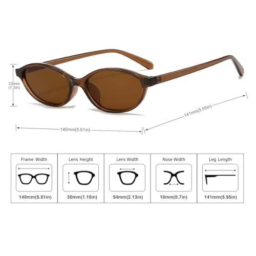 Retro Oval Cat Eye Sunglasses for Women Trendy Narrow Oval Sunnies 90s Vintage Shades 6