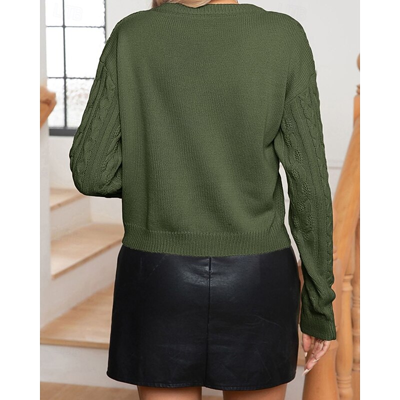 More information about Women's Pullover Casual Solid Color Chunky Crew Neck Knitted Long Sleeve Regular Tops Knit Daily Holiday Going out Brown Green Fall Winter