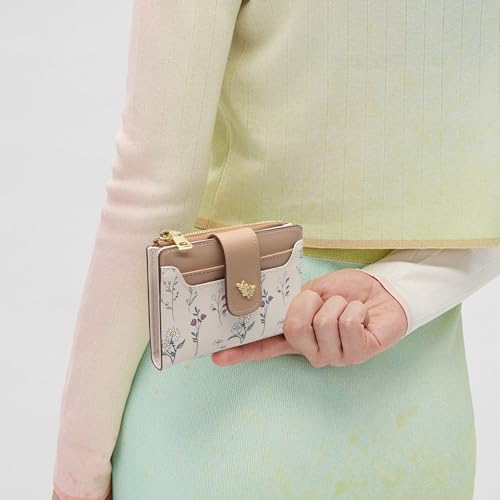 HOT ! LJCZKA Small Wallets for Women Bifold Leather Zipper Pocket Wallet Credit Card Holder Floral Purse Girls Ladies with ID Window (Khaki)