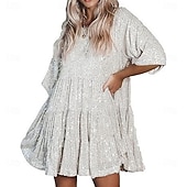 More information about Women's Mini Dress Sequin Dress Cocktail Dress Elegant Dress Fashion Modern Evening Party Cocktail Party Weekend Regular Fit Plain Short Sleeve Crew Neck Silver Black Pink Summer