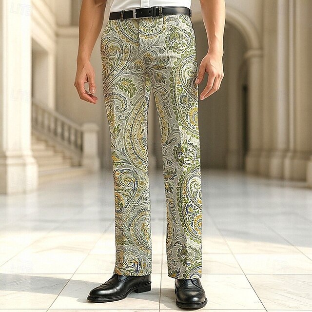 HOT ! Men's Dress Pants Trousers Suit Pants Paisley Floral Print Flowers Full Length Outdoor Vacation Daily Retro Vintage Light Green Blue Micro-elastic